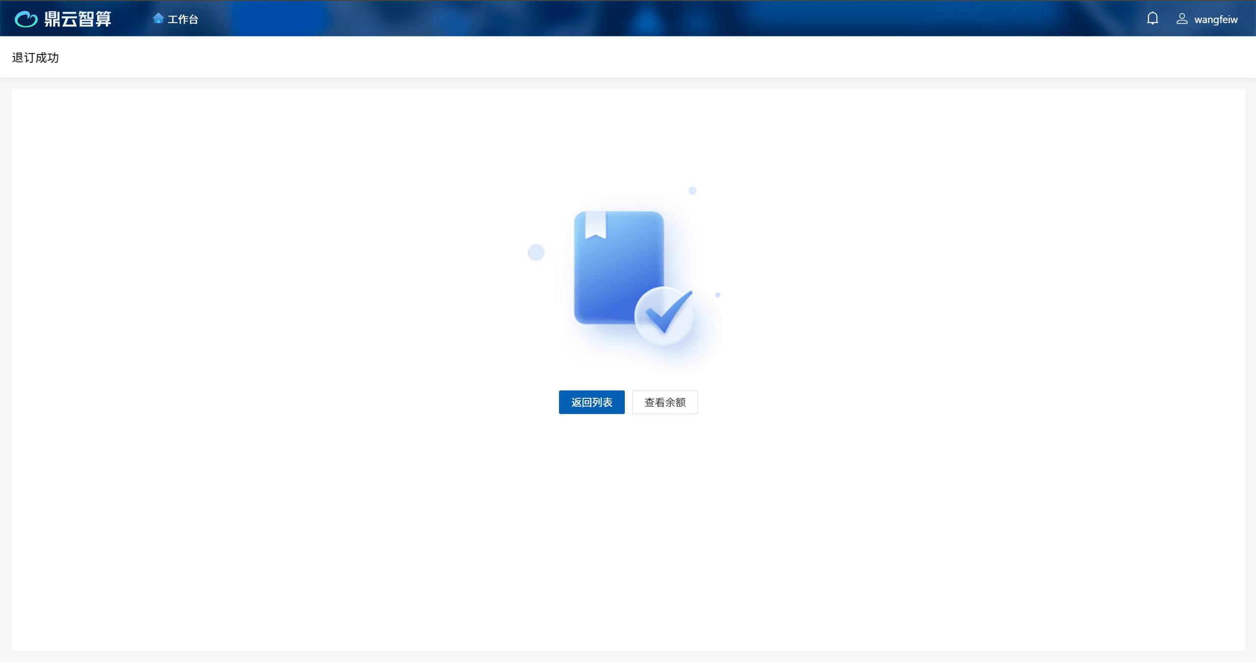 在订阅列表页,点击退订按钮,即可进入退订页面,核对退订项和退订金额后点击立即退订后可对订阅进行退订,如下图所示: