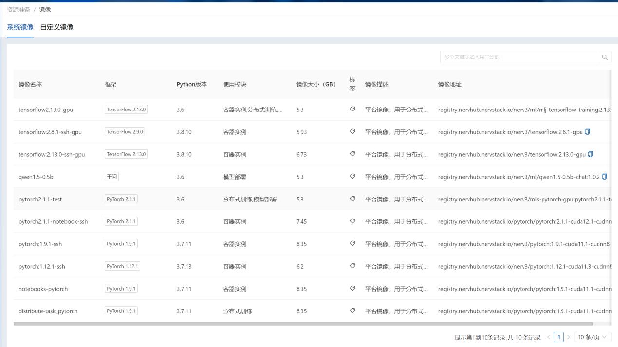 可对系统镜像列表进行查看,镜像地址支持复制,镜像标签支持查看,如下图所示: