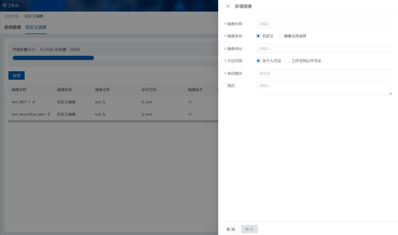 点击列表页中“新建”按钮,弹出新建弹窗,可选自定义创建和镜像仓库创建两种方式,如下图所示: