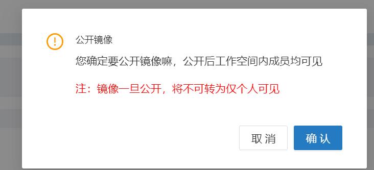 根据提示再次点击“确定”按钮即可公开镜像。